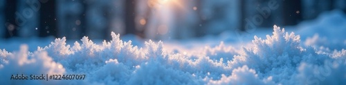 Sparkling snow crystals on a frosty forest floor, crystal, frosty