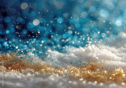 Sparkling textures and vibrant colors blend in a mesmerizing display of glitter and bokeh under soft lighting