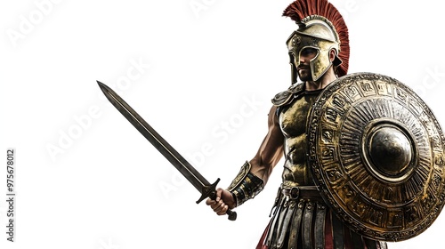 Spartan Warrior in Ancient Greek Armor Wielding Sword and Shield