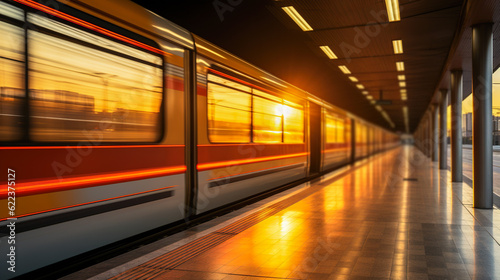 Speed and Efficiency: A Fast Train Passing Through a Modern Train Station, Generative AI