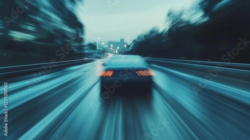 Speeding Car on Rainy Night Road Captures the Essence of Dynamic Urban Commute : Generative AI