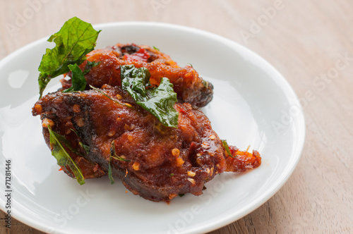 Spicy Stir Fried catfish on dish
