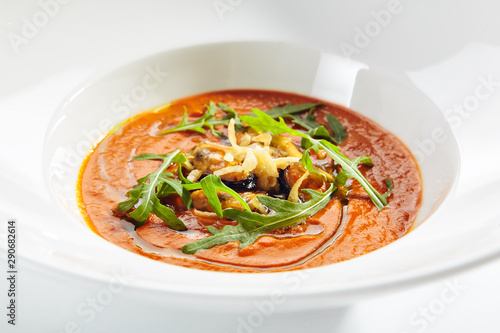 Spicy Tomato Soup with Fried Mussels and Chili Pepper