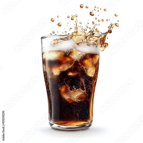 Splashing Carbonated Soda Drink in Transparent Glass on White Background