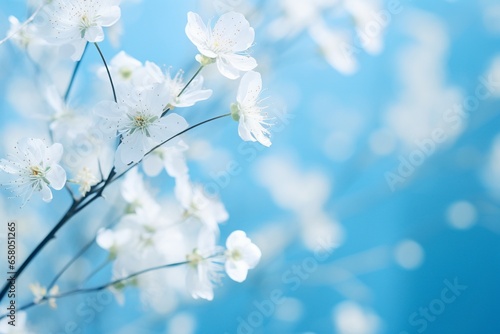 Spring Elegance: White Forest Flowers on Blue