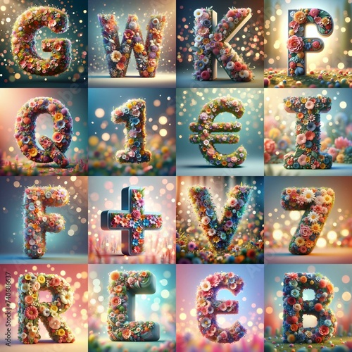 Spring flowers 3D Lettering Typeface. AI generated illustration
