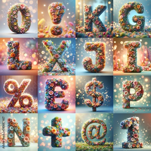 Spring flowers 3D Lettering Typeface. AI generated illustration