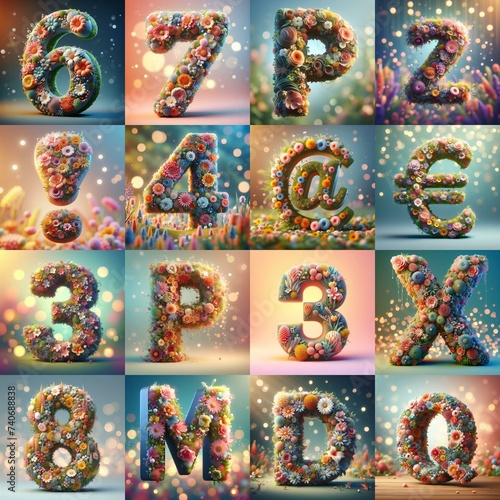 Spring flowers 3D Lettering Typeface. AI generated illustration