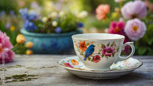 Spring holiday background, two bright birds sitting on a branch of a blooming yellow sakura, primrose, soft focus, no AI