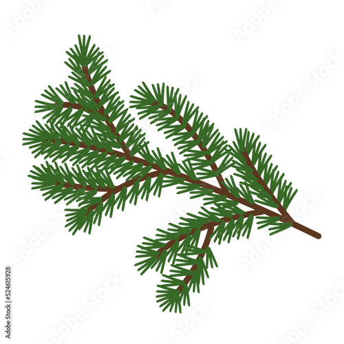 Spruce branch on a white background.Vector illustration can be used in Christmas designs,textiles.postcards.labels.