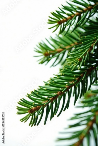 Spruce Tree Branch isolated on Creamy White Background, evergreen, wood texture, wooden branch