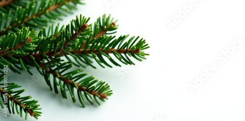 Spruce tree branch with pine needles on white, evergreen, foliage, greenery
