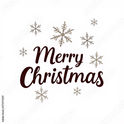 square white background center square text reads merry christmas cursive font dark brown color surrounding text several small snowflakes different sizes shapes scattered around text overall design