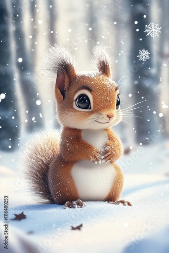 Squirrel in snow field. Winter theme background template for greeting card design.