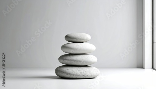 Stack of Four Smooth Gray Stones on White Surface Minimalist Zen Arrangement