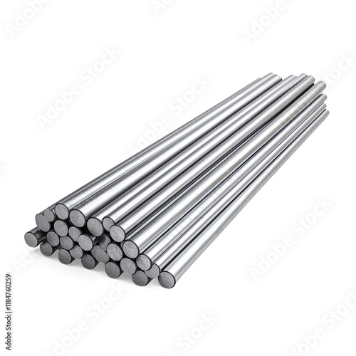 Stack of Shiny Metal Rods in Triangular Formation on a Transparent Background