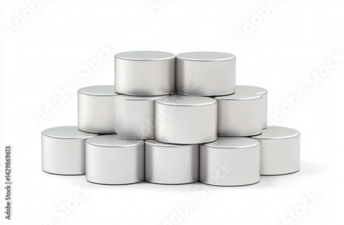 Stack of Silver Cylinders Mockup Perfect for Product Presentation or Abstract Background Design