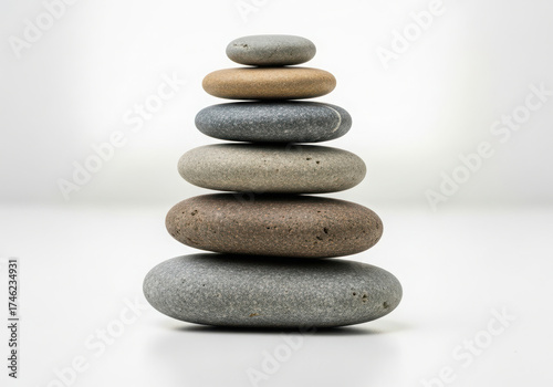 Stack of smooth balanced stones on a white background