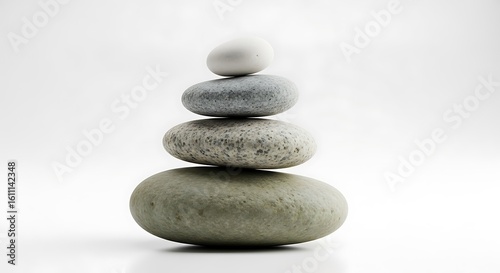Stack of smooth rounded stones balanced on a white background