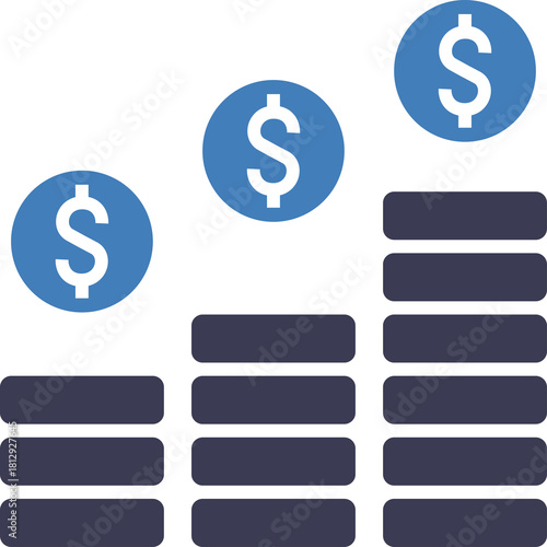 Stacked Coins With Dollar Signs Showing Financial Growth And Investment In Blue And Dark Blue Colors Against A Transparent Background