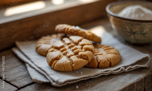 Stacked, textured cookies on linen cloth