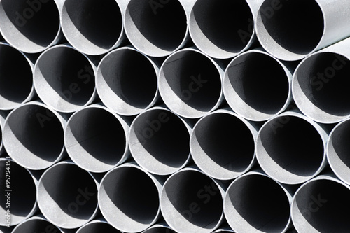 stacking steel pipe at construction site