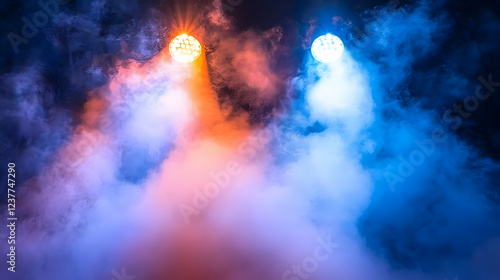 Stage lights illuminating smoke. Concert background