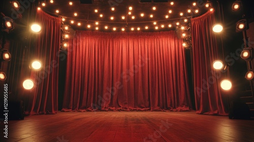 Stage with Red Curtain and Lights