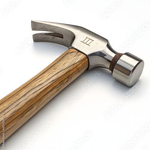 Stainless steel hammer with a wooden handle and claw for construction and repair tasks