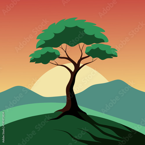 "Stand tall" with a lone tree on a hill. vektor illustation