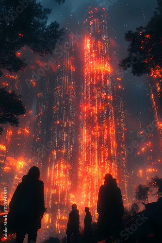 Standing in the city, a group of young people gazed at the towering skyscrapers made completely from data and code.