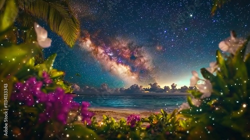 Stargazing night under the milky way tropical beach scenic photography lush environment serene viewpoint cosmic wonder