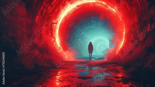 staring into the abyss light at the end of the tunnel abstract silhouette background wallpaperillustration image