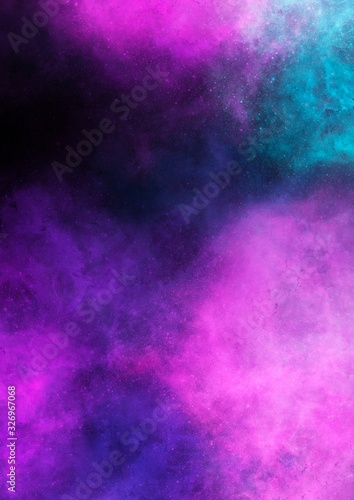 Starry sky. Diamond night. Heavenly radiance. Flashes of light in the sky. Neon gray-blue light from the dark. Magic background for night club design. Mystical smoke.