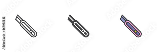 Stationery knife different style icon set