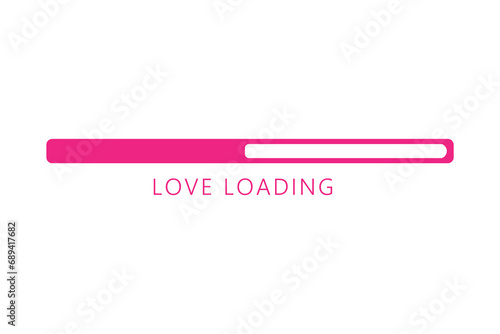 Status bar with text LOVE LOADING on white background. Valentine's Day celebration