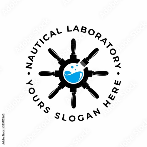 Steering Marine Glassware Lab for nautical laboratory vector logo design