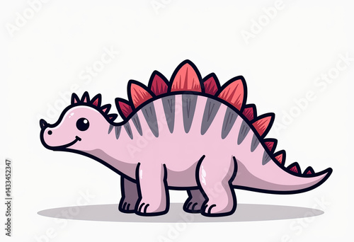 Stegosaurus in Lavender Hues: A Charming Flat Line Illustration of a Pink Stegosaurus with Scaly Texture, Thick Outlines, and Pastel Purple Coloring on a White Backdrop, Designed for Children.