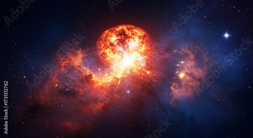 Stellar explosion glowing in dramatic cosmic light