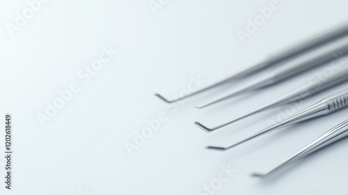 Sterile dental instruments on white background