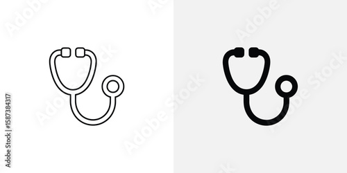 Stethoscope Line Art and Solid Icon Medical Equipment Illustration on Split Background