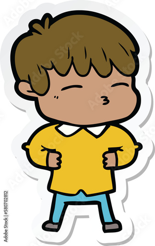sticker of a cartoon curious boy