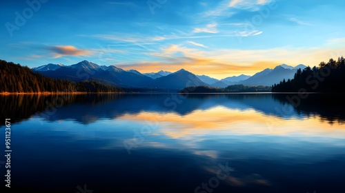 Still lake with clear reflections of mountains and trees, in a precise oil painting style, hand brushstrokes detailing every texture, soft colors, and serene atmosphere.