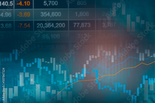 Stock market investment trading financial, coin and Ukraine flag or Forex for analyze profit finance business trend data background.