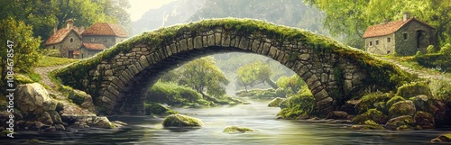 Stone Arch Bridge Over a Stream in a Lush Forest Setting