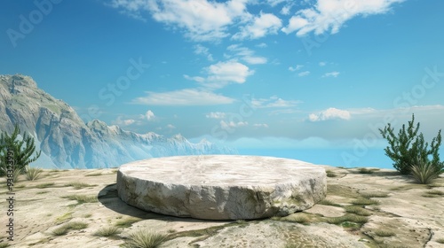 Stone podium in background, Rock stand product display