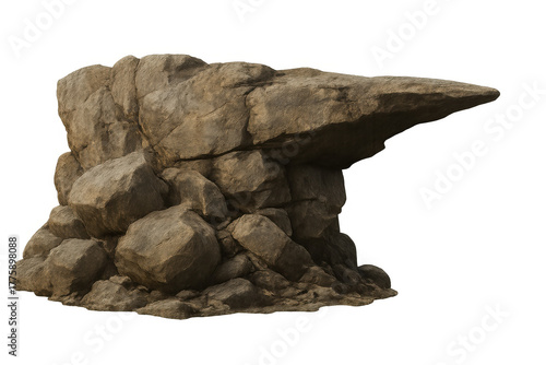 Stone rock formation with overhang and ledge isolated on transparent background, showing natural geology