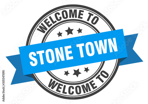 Stone Town stamp. welcome to Stone Town blue sign