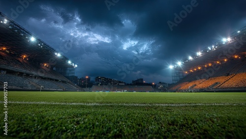 Stormy Night Soccer Stadium, Game Cancelled, Cityscape