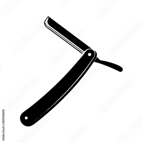 Straight razor black and white art, vintage shaving tool. Simple minimalist barber logo design element. Vector clipart illustration.
